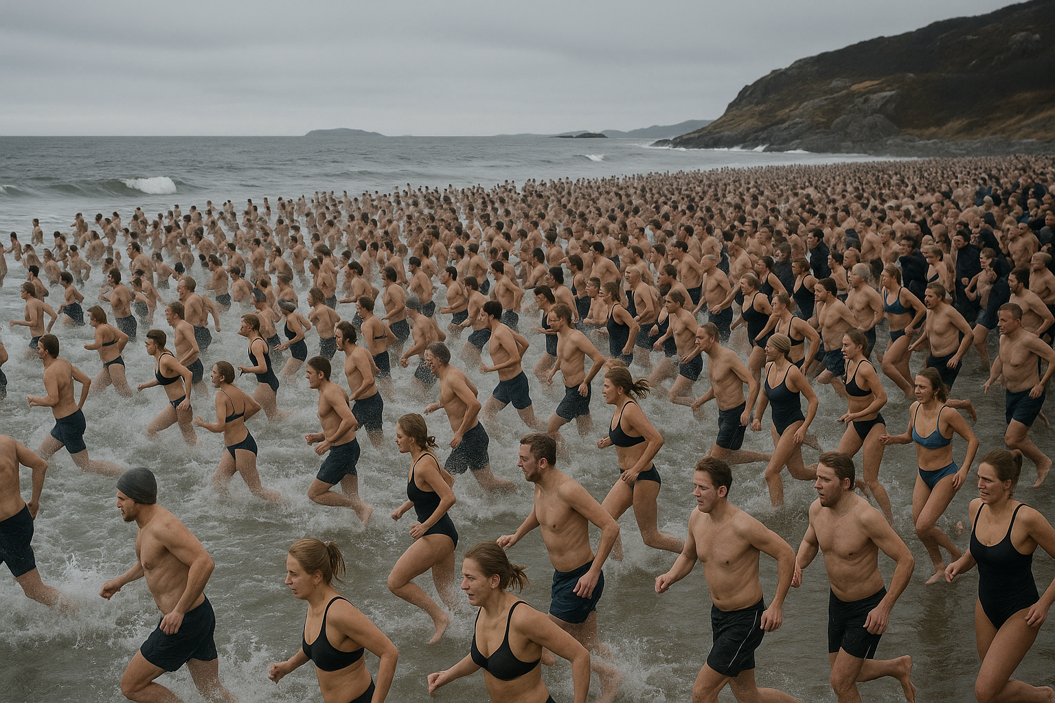 At Ølberg Beach in the municipality of Sola, 3,147 people entered the sea simultaneously, setting a new world record in winter swimming.